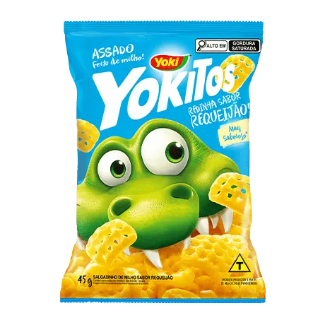 Farinha de milho* enriquecida com ferro e ácido fólico, semolina de milho* enriquecida com ferro e ácido fólico, oleína vegetal de palma, aromatizante e corante natural urucum.